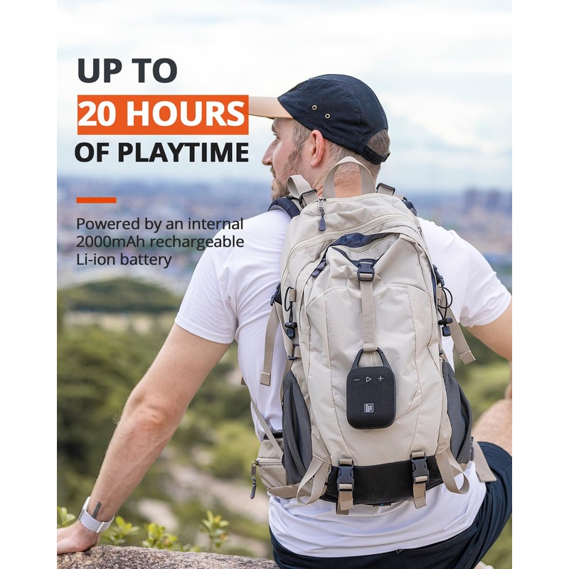 - 【20-Hour Long Battery Life & IPX7 Waterproof】The Tronsmart H1 portable speaker offers up to 20 hours of battery life, powered by a 2000mAh battery. With its long-lasting charge, this travel speaker is perfect for climbing or hiking all day without recharging. Besides, the H1 waterproof Bluetooth speaker is IPX7-rated. Whether using it as a shower Bluetooth speaker, or taking it to the pool, beach, or kayaking, you won’t have to worry about water damage.