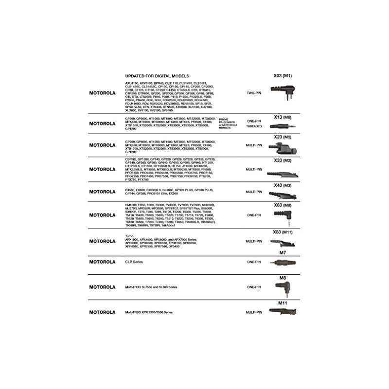 Trooper II QD Noise Cancel Water Proof Speaker Mic for Motorola 2-Pin (See List). Compatible with Motorola AXU4100, AXV5100, BPR40, CLS1110, CLS1410, CLS1413, CLS1450C, CLS1453C, CP100, CP150, CP185, CP200, CP200D, CP88, CT125, CT150, CT250, CT450, CT450LS, DTR, DTR410, DTR550, DTR650, GP200, GP2000, GP300, GP308, GP68, GP88, GTI, GTX, LTS2000, P040, P080, P110, P1225, P1225LS, P200, P2000, PR400, RDK, RDU, RDU2020, RDU2080D, RDU4100, RDU4160D, RDV, RDV2020, RDV2080D, RDV5100, SP10, SP21, SP50, VL50, XTN, XTN446, XTN500, XTN600, XU1100, XU2100, XU2600, XV1100, XV2100, and XV2600. WATERPROOF & NOISE CANCELING TROOPER II SPM-2200 Series. The TROOPERII is an upgraded and weatherized version of our TROOPER series speaker microphone, the best-selling PRYME speaker microphone product of all time. The TROOPERII is better sealed to prevent dust and moisture from entering the microphone. A weatherized version of our TROOPER speaker microphone. IP56 rating - sealed against dust and liquid. Earphone jack faces down to prevent rain from entering (jack should be covered by the supplied cap when not in use.) Optional listen-only earphones are sold separately. Large PTT button is easy to operate even when wearing gloves in cold weather. Features 3.5mm accessory jack for connecting an earphone to the unit (See EH-300, EH-1300, EH-1200 series for listen only earpieces). Noise canceling microphone HYDRA (patent pending) radio connectors are available only on select radio connector models and are molded to provide the very best resistance to elements. Because the wires and electronic components inside of the connector are sealed beneath the hardened thermoplastic shell, the connector is completely waterproof and can be fully immersed. RINO super rugged cables are the most durable microphone cable ever. The new RINO cable is a rugged, military-grade cable that is engineered to last longer and retain its original shape better than our previous cable.