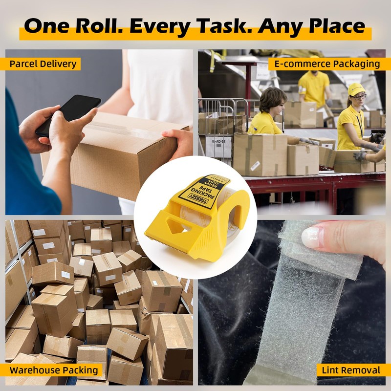 - Compact and Multi-Location Access: This clear packing tape with dispenser is easy to store anywhere—desk drawer, glove box, kitchen shelf—ensuring you always have packaging tape ready anywhere