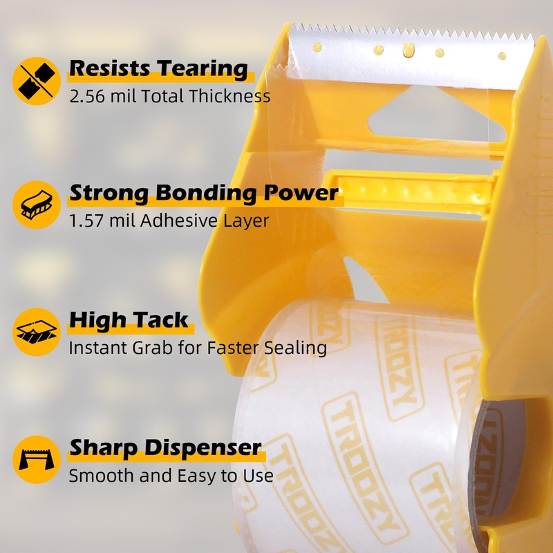 TROOZY Heavy Duty Packing Tape with Dispenser for Packing Shipping, Moving and Boxes, 2.56 mil Thick, 1.88 in x 22 yd, 6 Pack, Total 133 yd