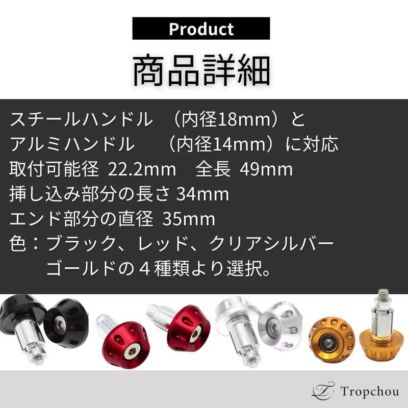 Tropchou Bike Bar End Grips for Aluminum Handles, Aluminum Handles, 22.2mm, Set of 2 (Black)