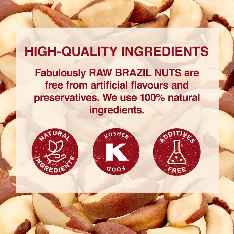- EXPERIENCE NATURAL FRESHNESS: Enjoy the pure and natural taste of our premium raw Brazil nut that’s bursting with fresh flavours. With a satisfying crunch, these nuts are sure to delight your taste buds and leave you coming back for more.