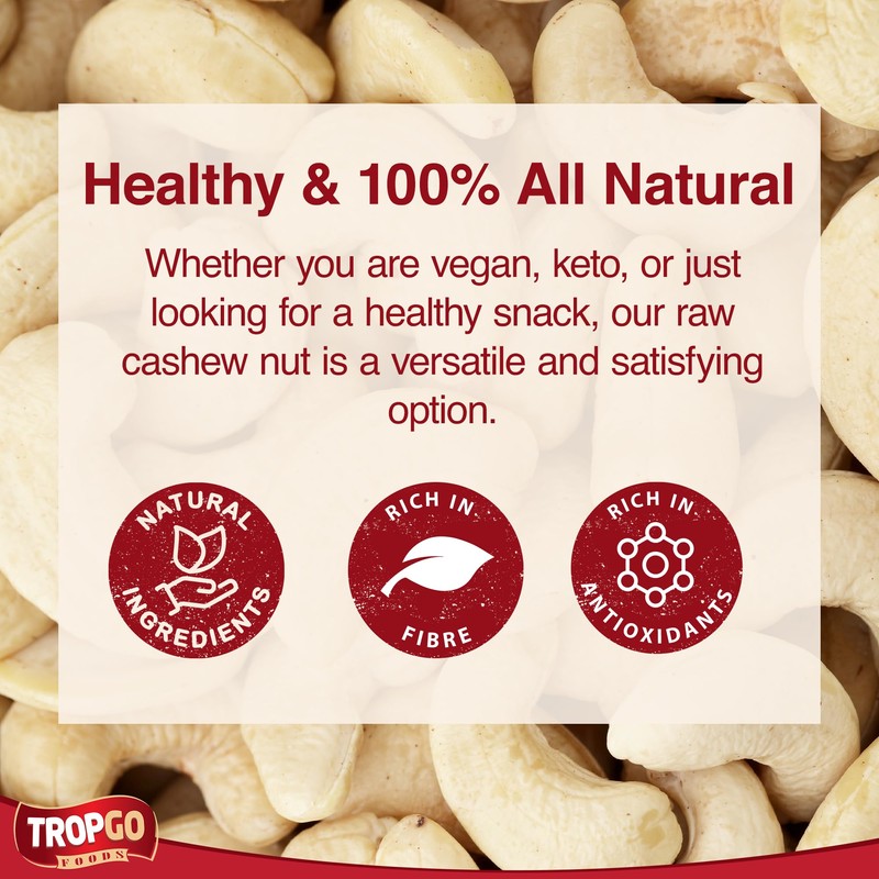 - Creamy Goodness of Fresh Cashews in a Tub: Indulge yourself with a mouth-sweet delight of Tropgo's Unsalted Whole Cashew Nuts. Each satisfying crunch of these natural cashews will leave you wanting more.