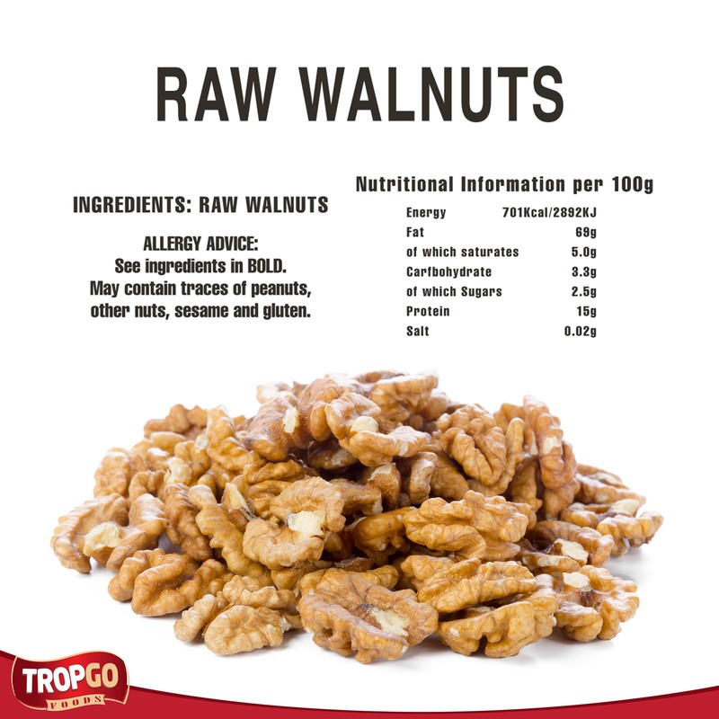 Tropgo Walnuts Halves - 300g - Raw Jumbo Walnuts - Natural Sprouted Walnut - Packed Fresh Premium Quality Nuts - Healthy for the Heart, High in Fibre & Minerals - Perfect for Snacking