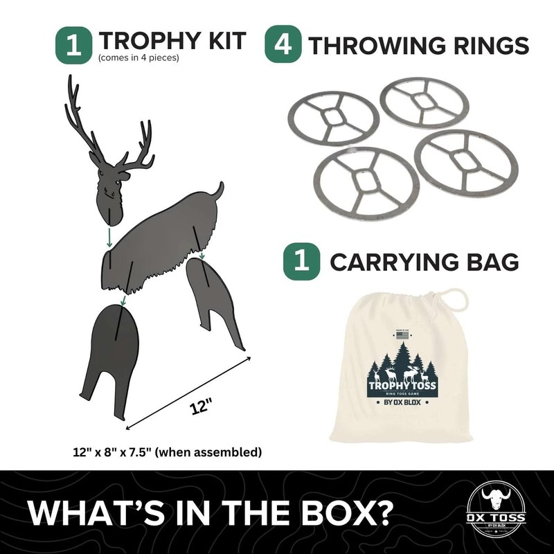 - Compact & Easy to Set Up: Trophy Toss is a perfect hunting, backyard or camping game for ages 15 and up. Its straightforward design allows for quick assembly and disassembly, and all components lie flat for easy transport in your car or RV