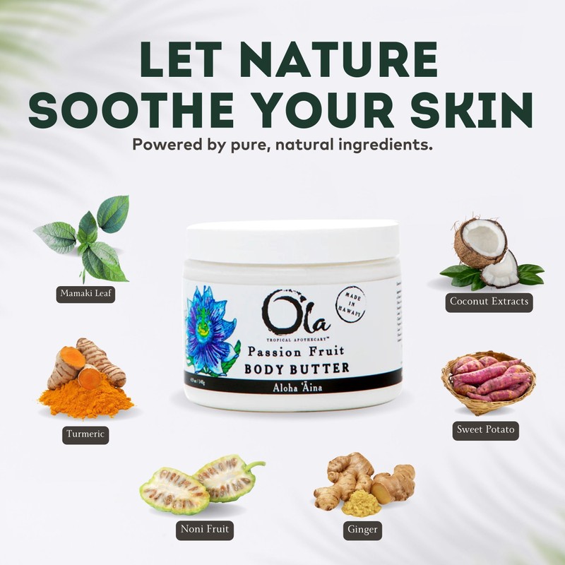 Tropical Apothecary Tropical Apothecary OLA Passion Fruit Body Butter C Moisturizing with Pure Coconut Oil and Hawaiian Plant Extracts - Ideal for Dry Skin - 2.1oz