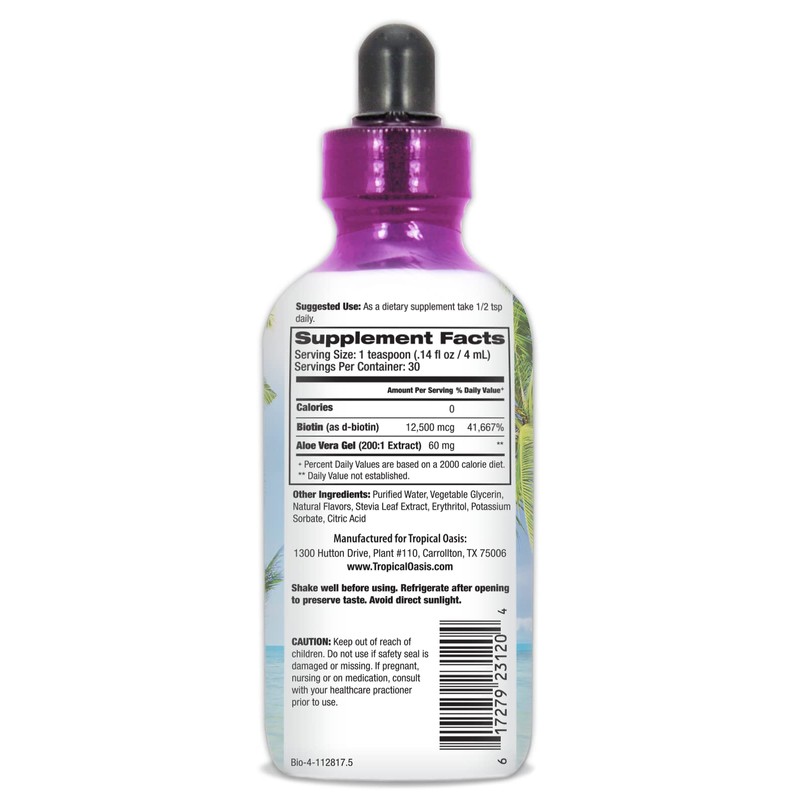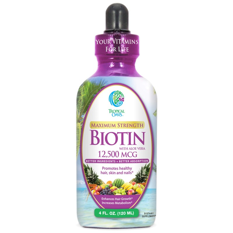 Tropical Oasis Maximum Strength Liquid Biotin Drops w/ 12,500 MCG C Best Vitamins for Fast Hair Growth, Reduced Hair Loss, Healthy Skin & Strong Nails -5X More Potent Than PillsC Max Absorption, VeganC 4oz, 30 Serv
