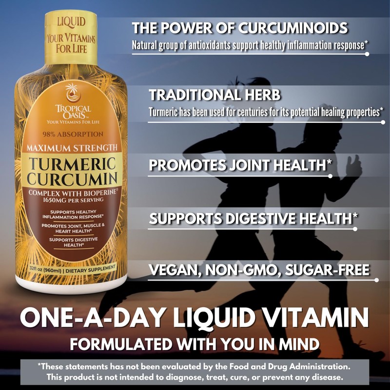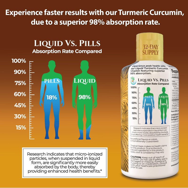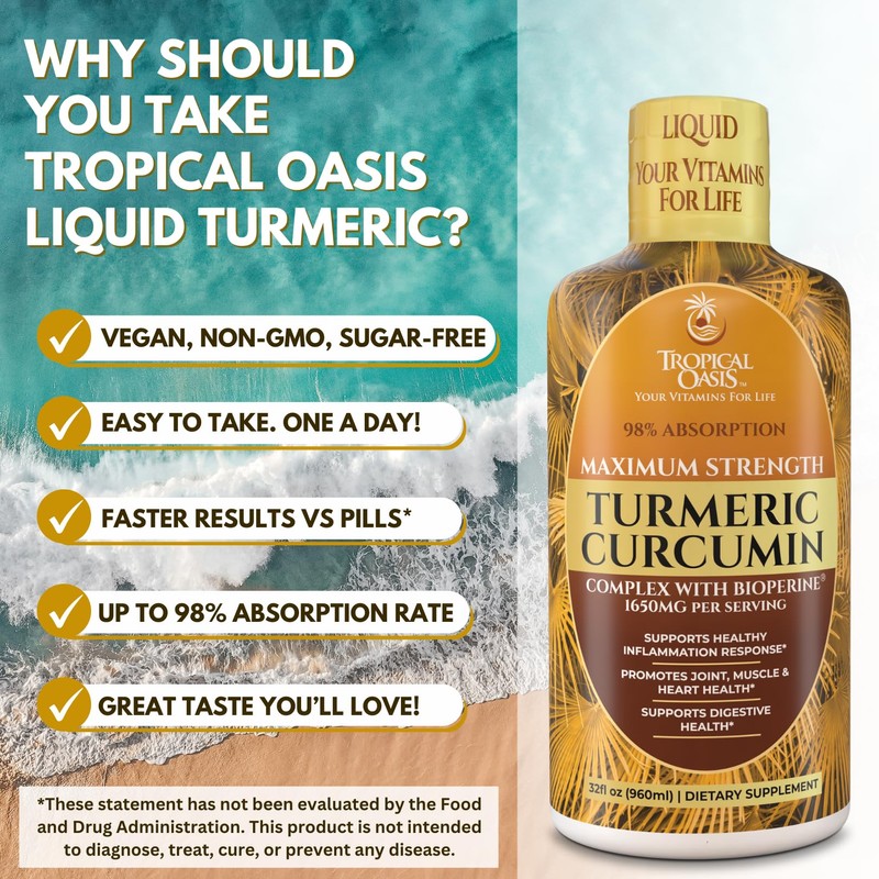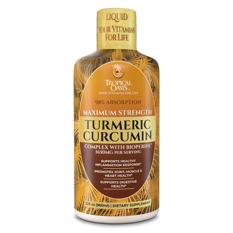 Tropical Oasis Liquid Turmeric Curcumin w/Bioperine - 1650mg Maximum Strength Turmeric Supplement with Black Pepper & Vitamin C - 98% Absorption Rate - 32oz