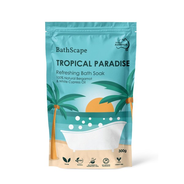 - Epsom Salt a.k.a Magnesium Sulphate, the ‘hero’ ingredient that exfoliates dead skin cells, soothes muscles and reduces inflammation. Australian Sea Salt, helps cleanse, detoxify and exfoliate the largest organ in the body- your Skin. White Cypress Leaf Oil, A well-kept Australian secret, used by Indigenous Australians to make bush medicine for thousands of years. It has antiseptic properties that helps reduce the risk of infection, and its aroma is deeply refreshing and uplifting. After Soak Effect, feeling of Happy and Refreshed 100% Natural No Artifical Fragrance Designed to give you feeling of a beach escape. Made in Australia Vegan