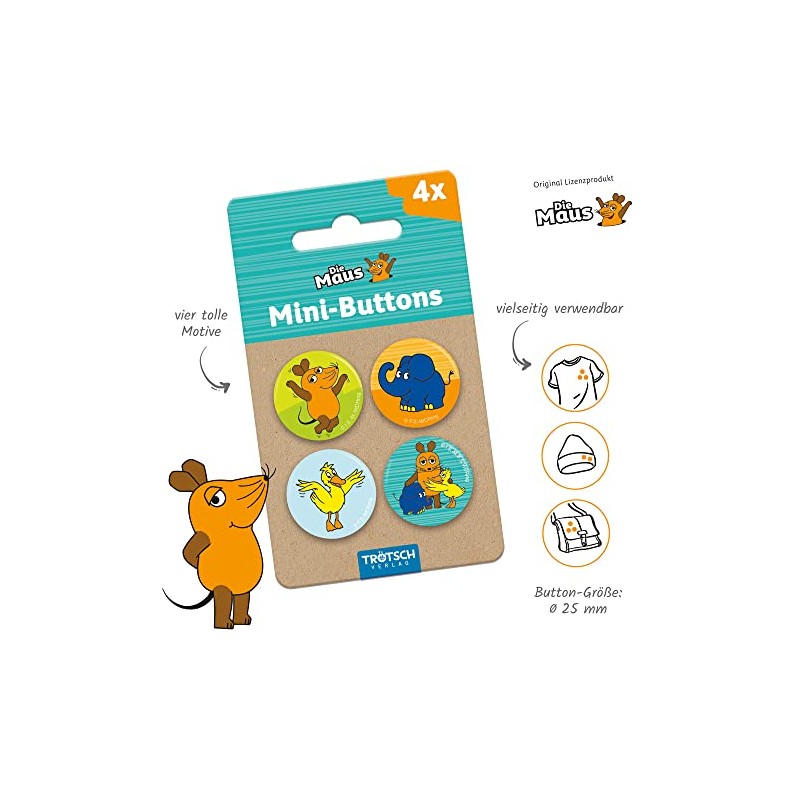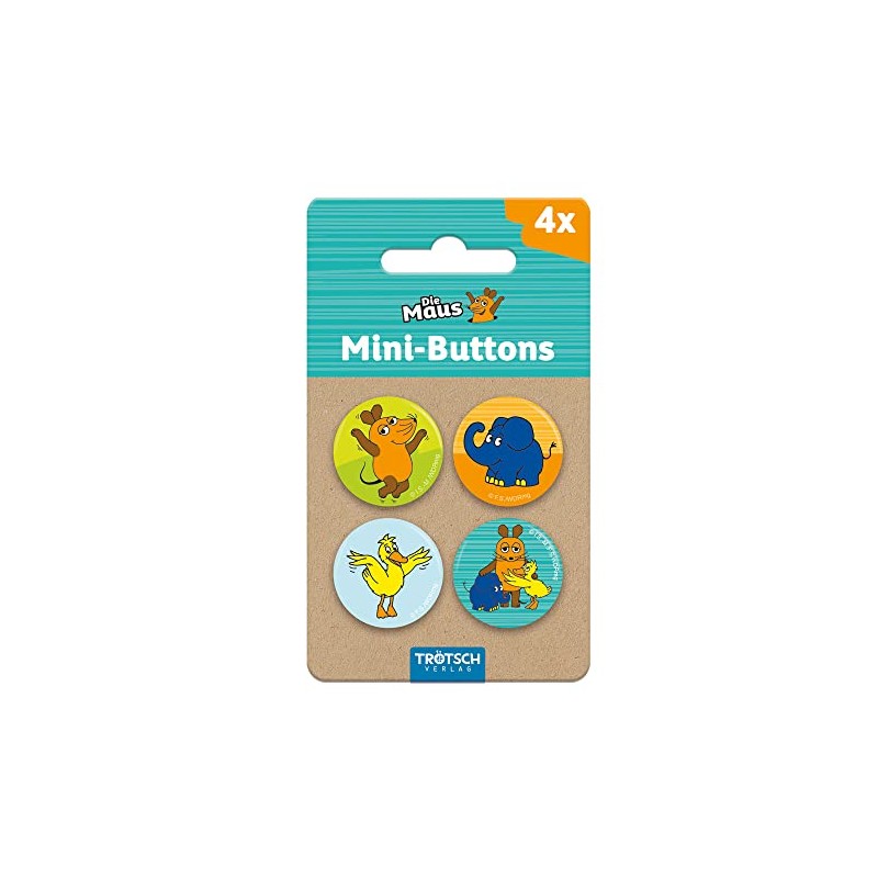 Trötsch Die Maus Mini-Buttons 4er Set: Mini-Buttons Die Maus Ansteckbuttons Anstecker mit Sicherheitsnadel