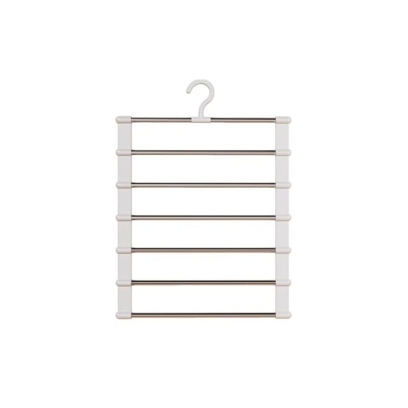 This 7-in-1 foldable trouser hanger made of stainless steel and high-quality ABS plastic combines durability with ease. Thanks to its 7-in-1 folding design, it saves 80% wardrobe space and is particularly suitable for small apartments, college dormitories and travel.