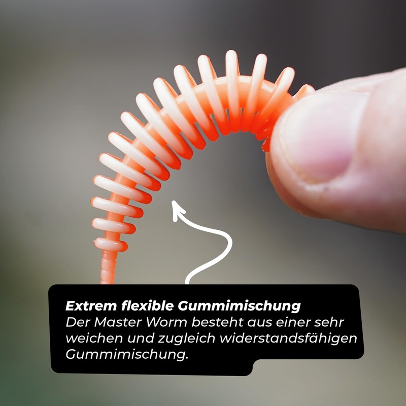 - ✅ EXTREMELY FLEXIBLE RUBBER COMPOSITION: The Master Worm is made of a very soft yet durable rubber compound that guarantees long durability on