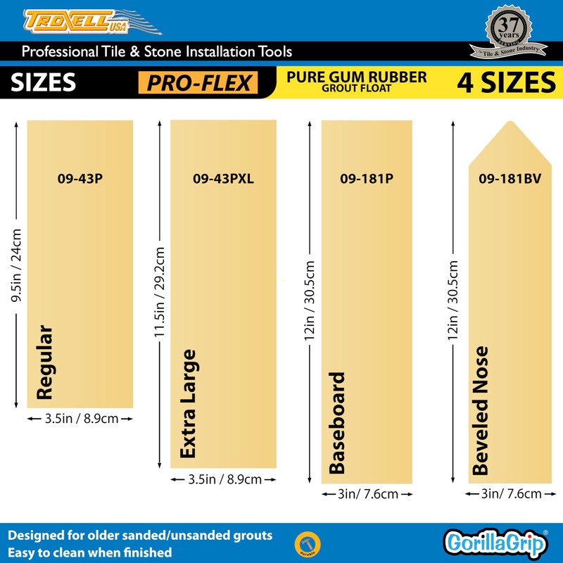 - Troxell 3" x 12" Gum Rubber Baseboard Float with offset Handle