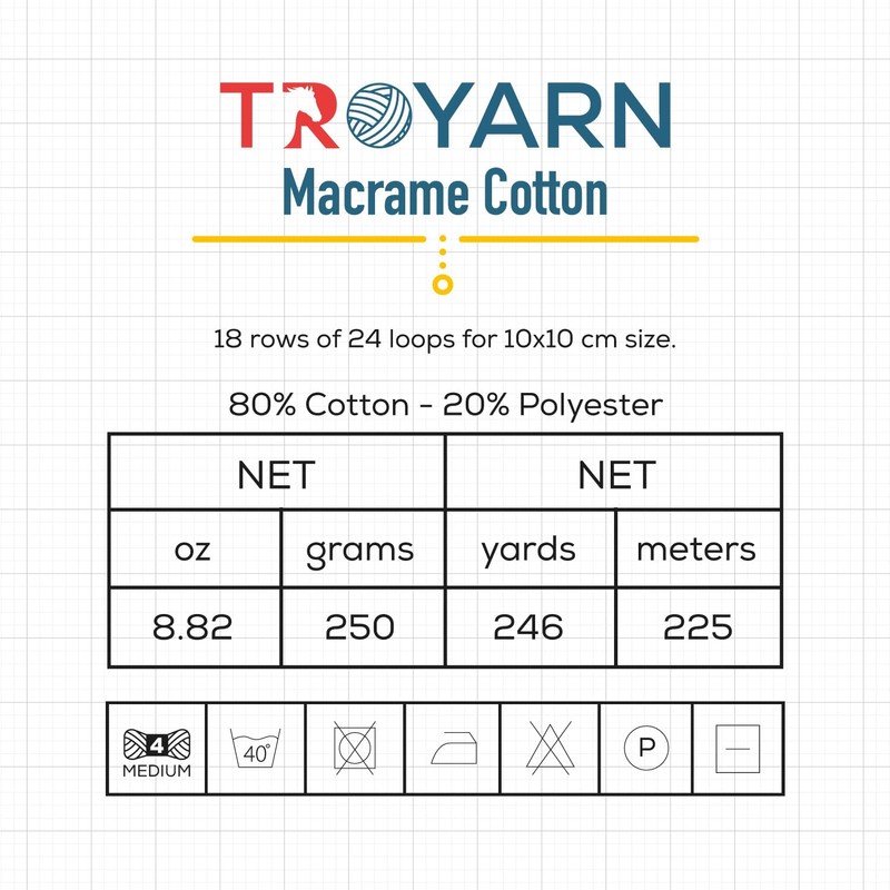 - 🧶Troyarn Macrame Cotton yarn is made of 80% Cotton %20 Polyester.