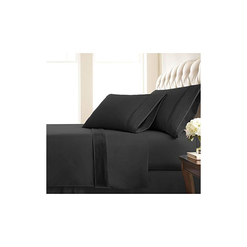 TRP 4 Piece Modern & Contemporary Classic 21-Inch Extra Deep Pocket Pleated Sheet Set Fully Elasticized Fitted Sheet 110 GSM Microfiber Fabric Farmhouse Bedding All Season Black Bed Sheets Queen
