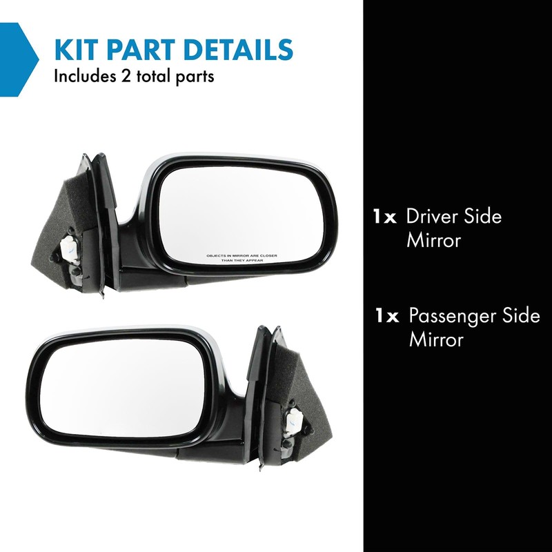 - Kit Includes: (1) Driver Side Mirror; (1) Passenger Side Mirror