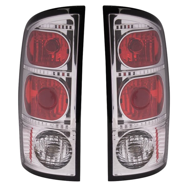 TRQ 2 Piece Driver & Passenger Side Tail Light Assembly Performance Set Chrome Housing Compatible with 2002-2006 Dodge Ram 1500 Ram 2500 Ram 3500 CH2800147 CH2801147