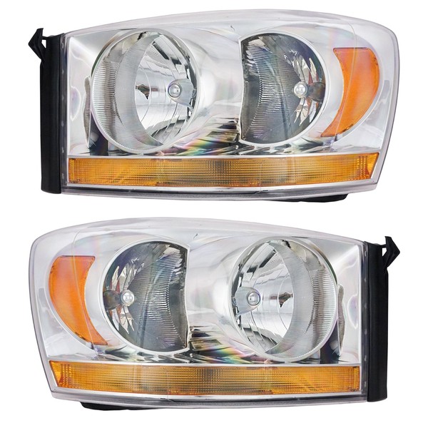 TRQ Driver & Passenger Side Headlight Assembly Set Headlights Driver & Passenger Side Compatible with 2006-2008 Dodge Ram 1500 2006-2009 Ram 2500 Ram 3500 CH2518114 CH2519114