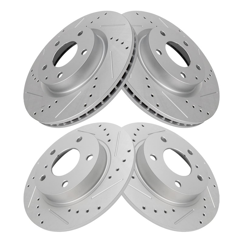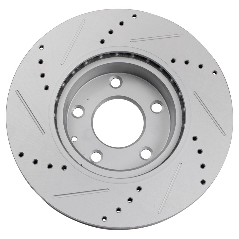TRQ Front and Rear Performance Brake Rotors Set Premium G-Coated Cross Drilled & Slotted Compatible with 2014-2018 Mazda 3 2019-2020 CX-3
