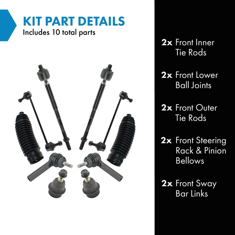 TRQ Front Steering & Suspension Kit Ball Joint Steering Rack & Pinion Bellow Sway Bar Stabilizer Link Tie Rod Compatible with 2009-2020 Dodge Journey