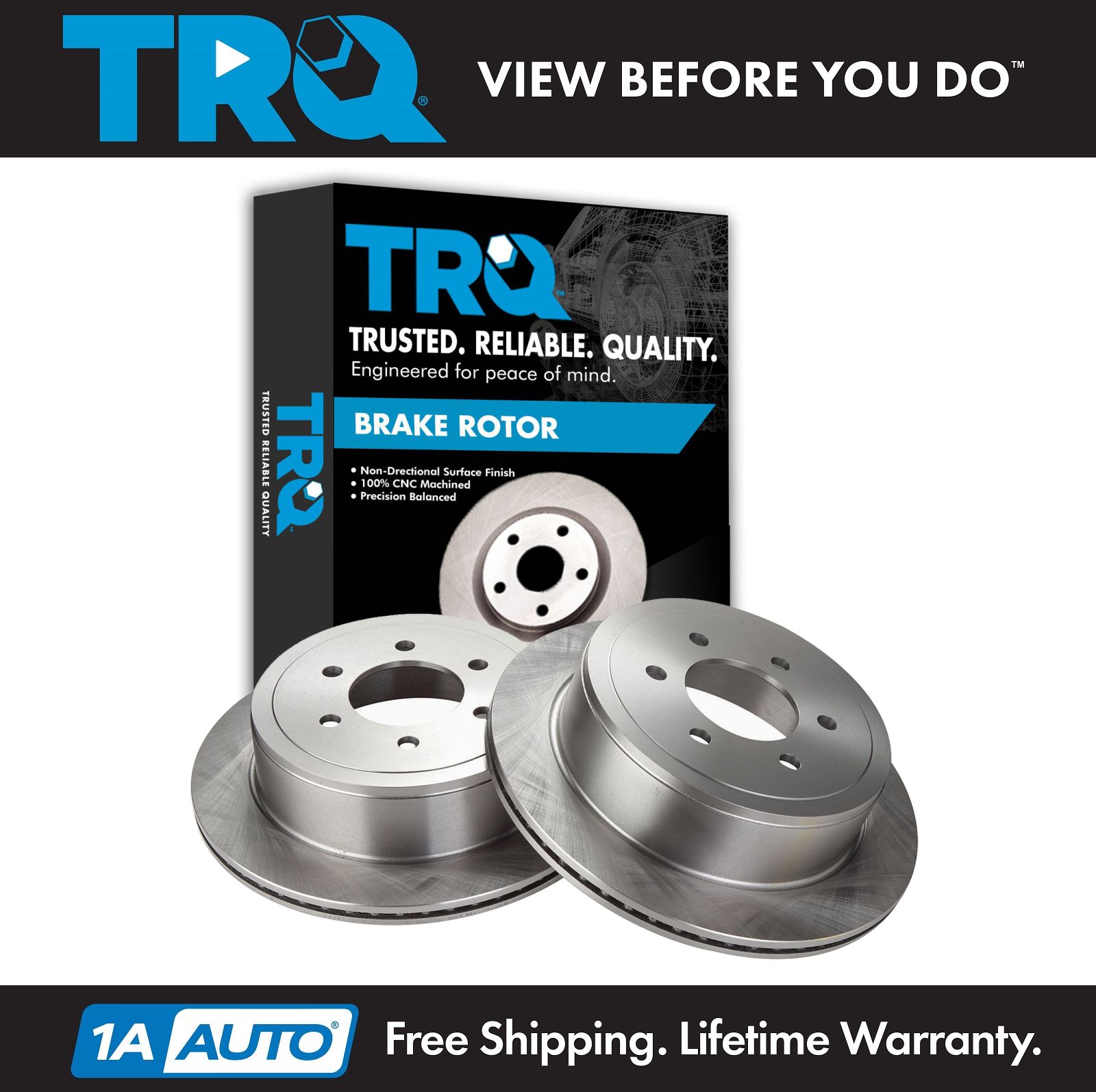 - TRQ - 2 total parts - 1x Rear Driver Side Brake Rotor, 1x Rear Passenger Side Brake Rotor