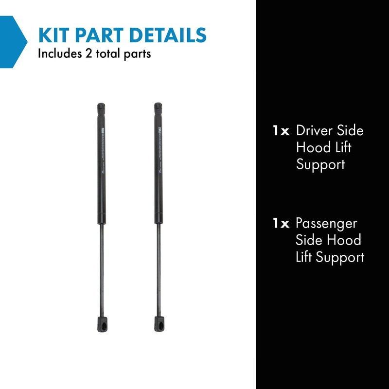 - Kit Includes:(1) Driver Side Hood Lift Support; (1) Passenger Side Hood Lift Support