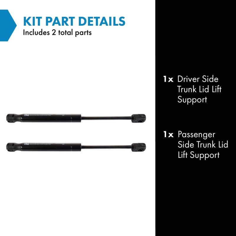 • Kit Includes:(1) Driver Side Trunk Lid Lift Support; (1) Passenger Side Trunk Lid Lift Support