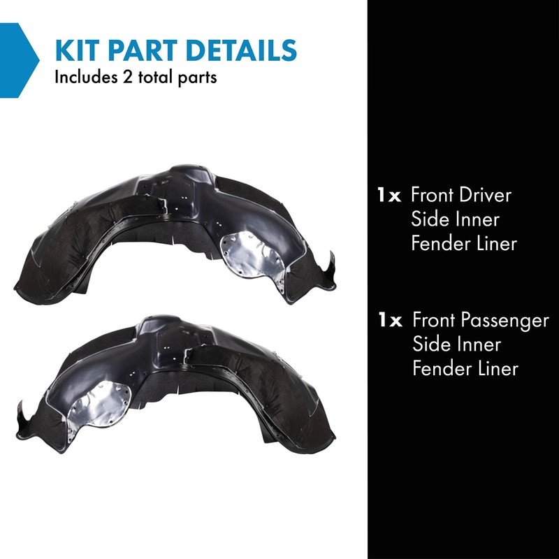 2 Piece Inner Fender Liner SetKit Includes(1) Front Driver Side Inner Fender Liner(1) Front Passenger Side Inner Fender LinerFitmentCompatible with: 2015-17 Ford Expedition Front Driver & Passenger SideCompatible with: 2015-17 Lincoln Navigator Front Driver & Passenger SideProduct AttributesQuantity: 2 PieceReference NumbersFord: FL1Z 16102 A, FL1Z 16103 A, FL1Z16102A, FL1Z16103ALincoln: FL1Z 16102 A, FL1Z 16103 A, FL1Z16102A, FL1Z16103APartslink Numbering System: FO1248173, FO1249173