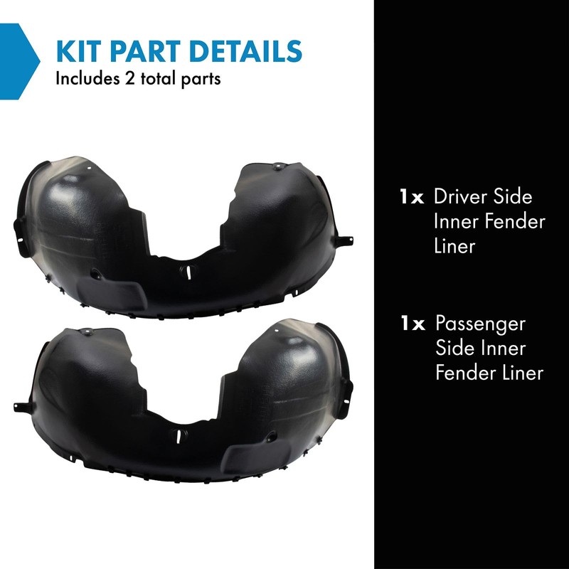 2 Piece Inner Fender Liner SetKit Includes(1) Driver Side Inner Fender Liner(1) Passenger Side Inner Fender LinerFitmentCompatible with: 1999-05 Saab 9-5 Driver & Passenger SideProduct AttributesQuantity: 2 PieceReference NumbersPartslink Numbering System: SB1248101, SB1249101Saab: 45 92 937, 45 92 945, 4592937, 4592945