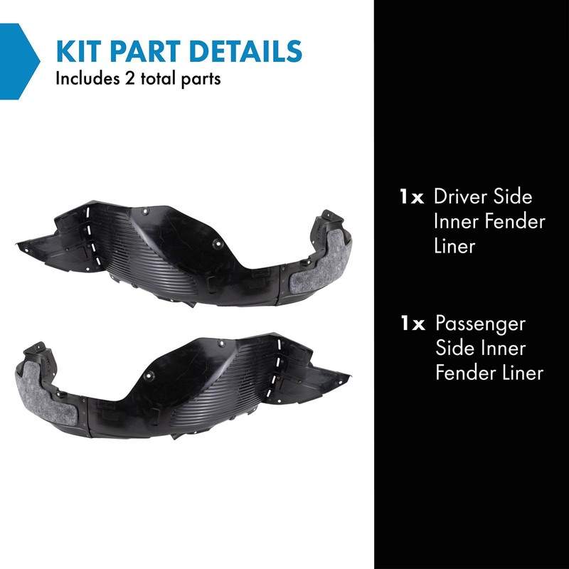 2 Piece Inner Fender Liner SetKit Includes(1) Driver Side Inner Fender Liner(1) Passenger Side Inner Fender LinerFitmentCompatible with: 2017-18 Kia Forte5 EX Driver & Passenger SideCompatible with: 2017-18 Kia Forte5 LX Driver & Passenger SideProduct AttributesQuantity: 2 PieceReference NumbersKia: 86811 A7900, 86811-A7900, 86811A7900, 86812 A7900, 86812-A7900, 86812A7900Partslink Numbering System: KI1248155, KI1249155