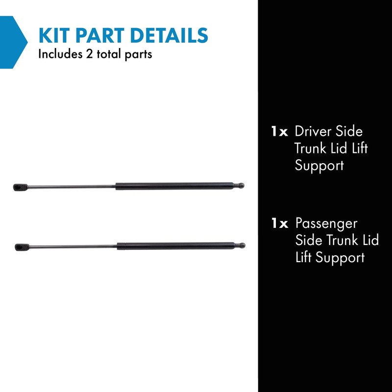 - Kit Includes:(1) Driver Side Trunk Lid Lift Support; (1) Passenger Side Trunk Lid Lift Support