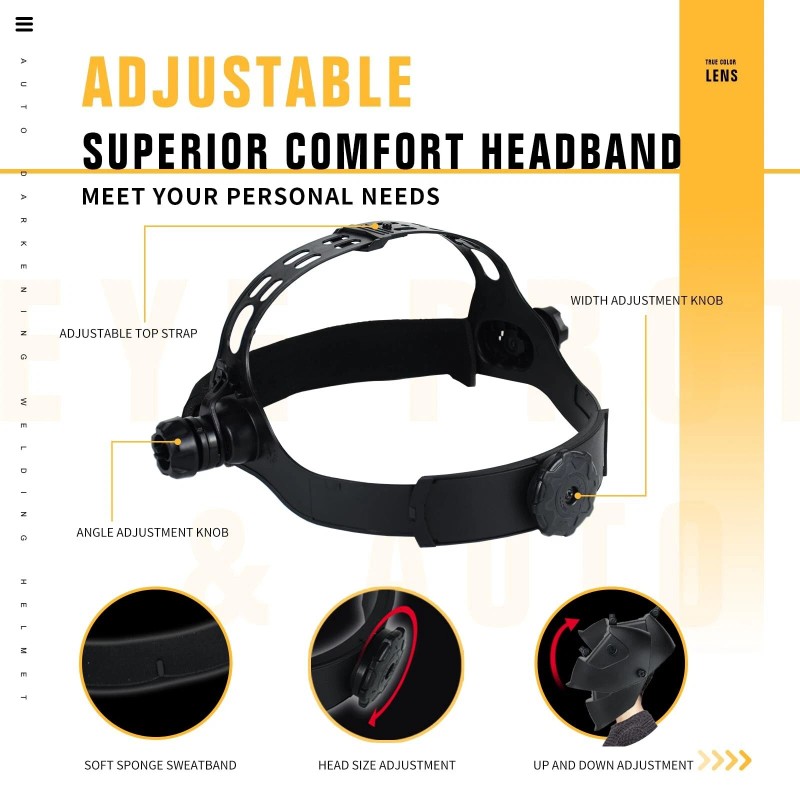 ❤Adjustable welding mask: TRQWH welding helmet auto darkening is ergonomically designed to provide ample internal space and easy to operate, with knobs on both sides to adjust the angle and knobs on the back to adjust the tightness of the headband to fit different people's heads. Welding mask is well-made, ultra-light weight, thickened sponge on the forehead and ear area, absorbing sweat, anti-slip, breathable, protecting forehead and ears from harm, comfortable even for long hours of work.