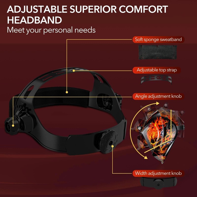 【Adjustable welding mask】 TRQWH welding helmet is ergonomically designed to provide ample internal space and easy to operate, with knobs on the back to adjust the tightness of the headband to fit different people's heads. True color helmet is well-made, ultra-light weight, thickened sponge on the forehead and ear area, absorbing sweat, anti-slip, breathable, protecting forehead and ears from harm, comfortable even for long hours of work.