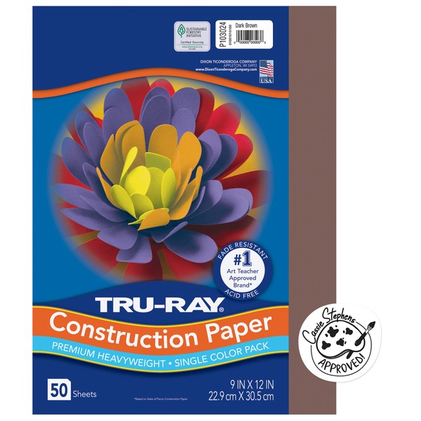 Tru-Ray Heavyweight Construction Paper, Dark Brown, 9" x 12", 50 Sheets