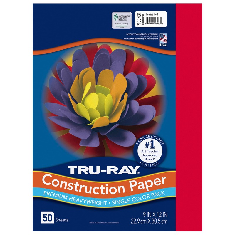 Create something great with heavyweight construction paper from Tru-Ray. Heavyweight 100 percent vat-dyed sulphite paper features longer, stronger, fibers that are tough enough to take scoring, folding, and curling without cracking or tearing. The paper's superior fade resistance keeps projects brighter and fresher for longer. Pack of construction paper in Festive Red color includes 50 sheets measuring 9 x 12 inches each.