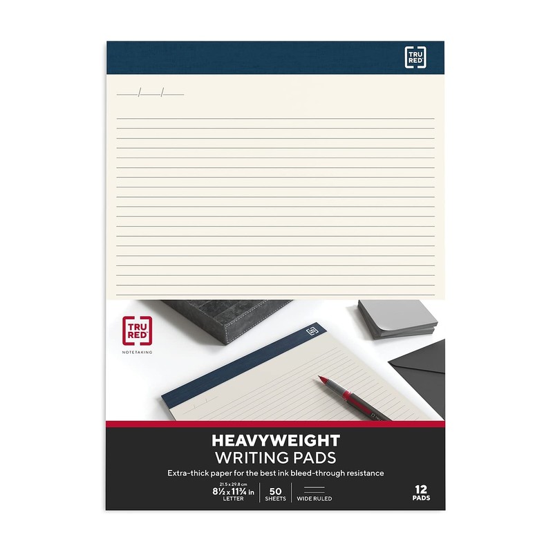 TRU RED Notepads, 8.5-inch x 11.75-inch, Narrow Ruled, Ivory, 50 Sheets/Pad, 24/Carton (TR59945VS)