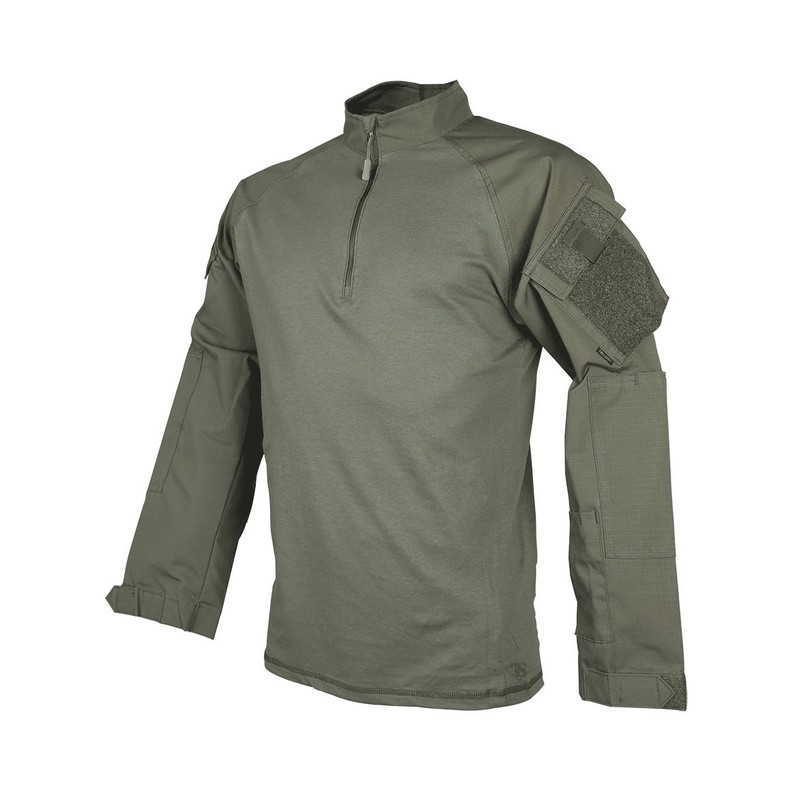Tru-Spec T.R.U. 1/4 Zip Combat Shirt, Men's Tactical Long Sleeves - 65/35 Polyester Cotton Rip-Stop Fabric, Le Green/Olive Drab - Large