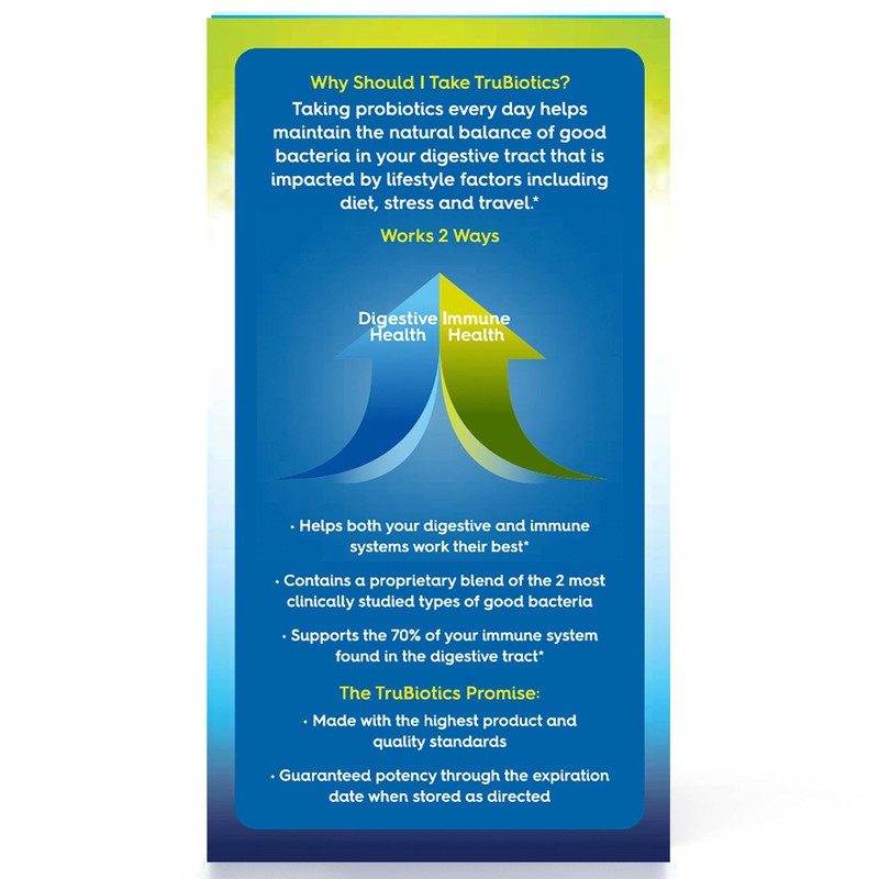 - Targeted Probiotics for Digestive Health: The natural balance of good bacteria in the gut is impacted by age and lifestyle factors, including diet, stress and travel.* TruBiotics daily probiotics help soothe occasional abdominal discomfort, gas and bloating