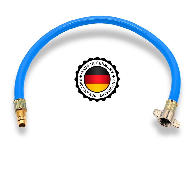 - High-quality compressed air adapter - Made in Germany - Robust truck filling hose for connection to the truck test port. Made in Germany for the highest quality and safety. Perfect for workshops, freight forwarders & commercial vehicles.