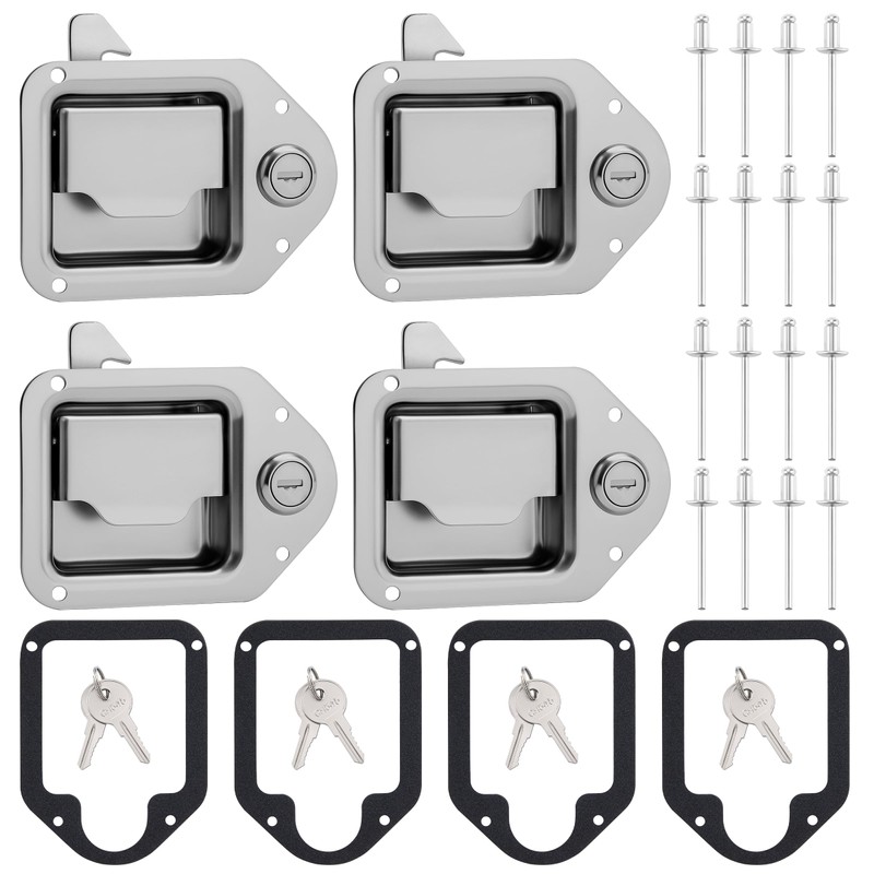 - Complete Set Included: This set includes 4 toolbox latches, 4 washers, 8 matching keys, and 16 mounting rivets—everything you need for installation or truck tool box lock replacement.