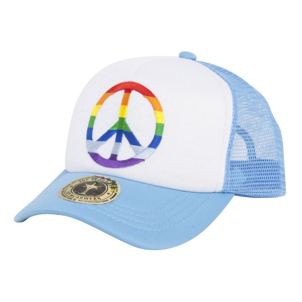 Trucker Foam Peace Sign Rainbow Mesh Snapback - Light Blue
