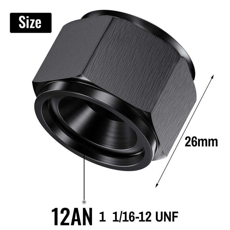 TRUCKMETER 2PCS 12AN Female Block Off Flare Cap Fitting, Black Anodized Aluminum Hard Hex Head Nut Plug Adapter, Automotive Accessories Suitable for Vehicle Fuel Oil Line End Modification