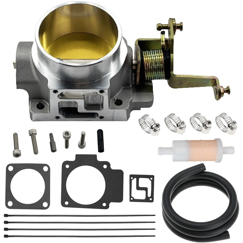- [Package Includes]:1* Throttle body ,4* Allen screws,1*Vacuum cover,1*Plum blossom head,4*Clamps,3*Base Gasket,1*Fuel Line,1*Fuel Filters,4*Ribbon.