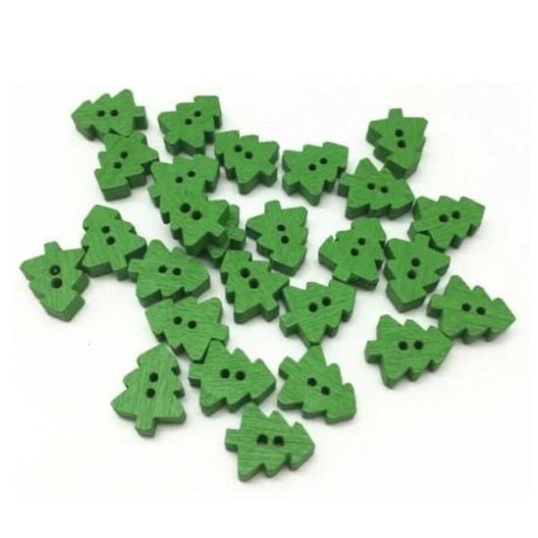 Wooden Christmas Tree Buttons 15mm 2 Holes Color: Green Pack of 12 Perfect for use in any of your sewing projects and all kinds of crafts
