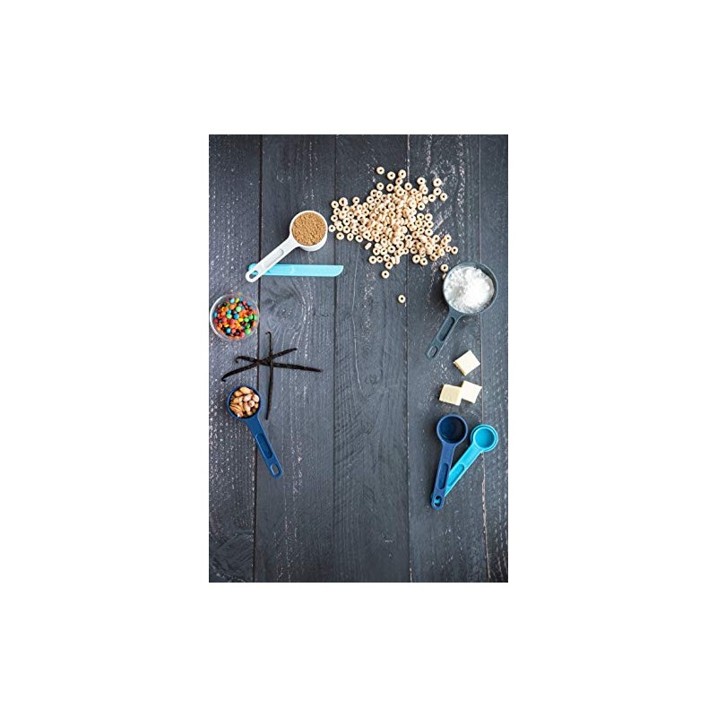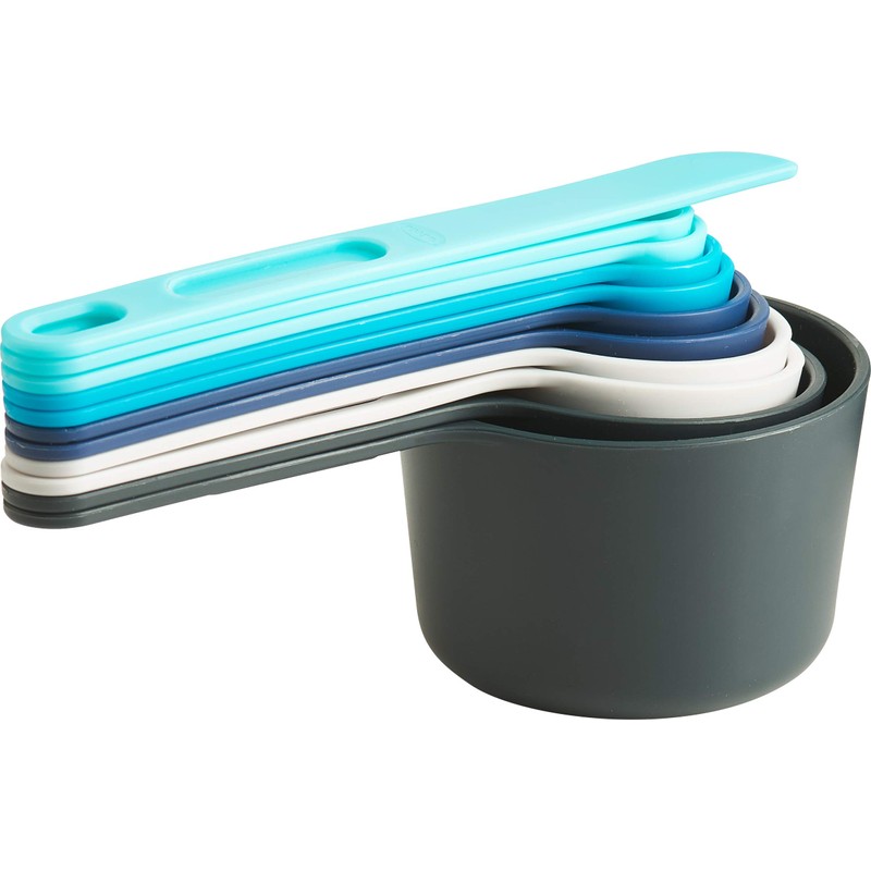 • All measuring cups, spoons and level snap together for storage, are BPA-free and dishwasher safe