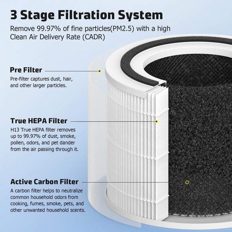 - 【Carbon Filter 】Absorbs household odors, such as smoke odors, pet odors, cooking odors and VOCs.