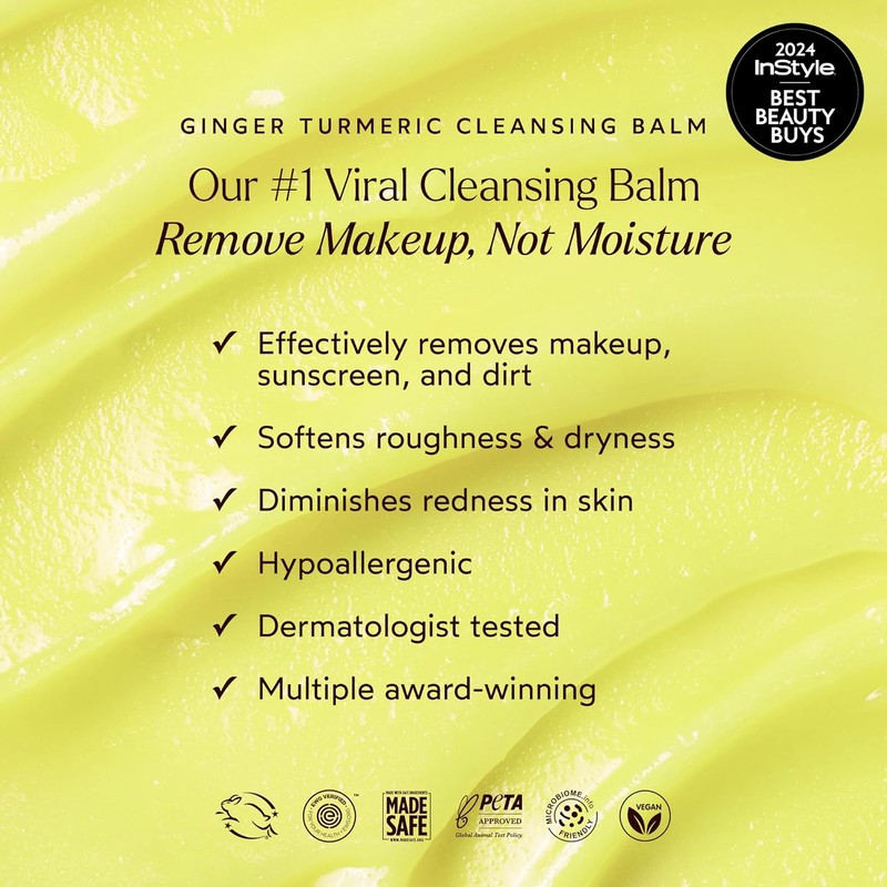A natural, moisturizing cleansing balm that effectively removes makeup, sunscreen, dirt, and impurities while nourishing the skin so it’s left clean, smooth and pillow-soft! Conventional cleansers can be formulated with harsh surfactants that can strip the skin’s moisture. That’s why we replaced harsh surfactants like sulfates with natural-biocompatible, makeup-melting Yucca Extract, and potential irritants and synthetic ingredients, like fragrance and silicones, with skin-coddling Turmeric and Ginger Root Oil - while Lactic Acid and Azelaic Acid gently exfoliate to reveal a brighter glow.