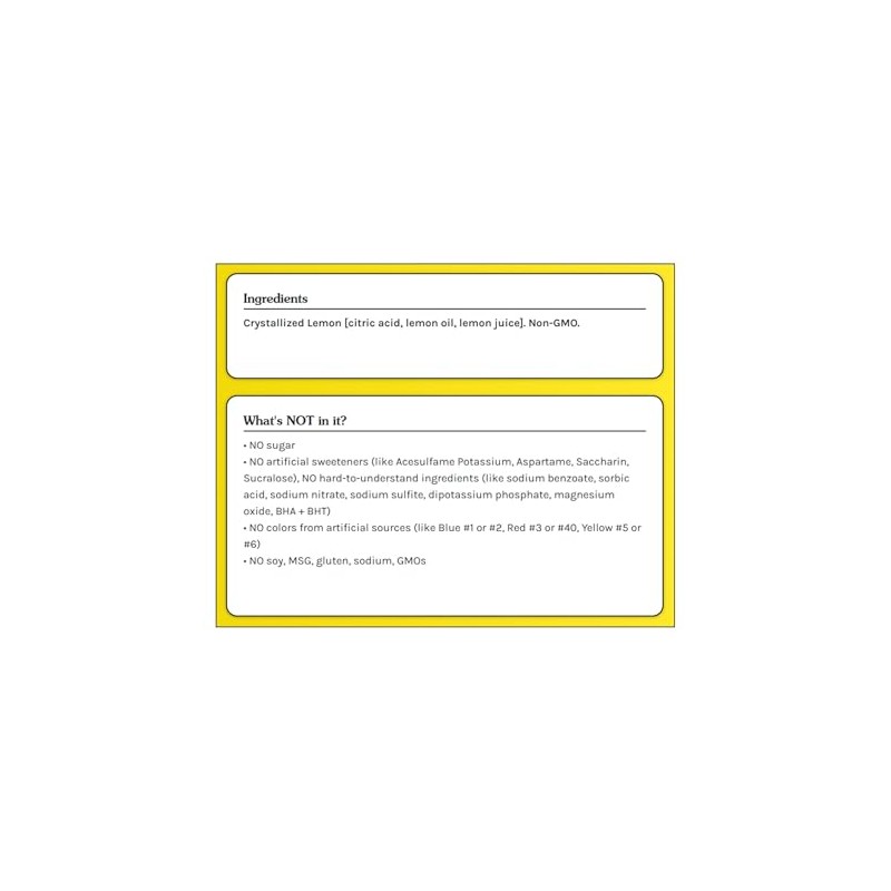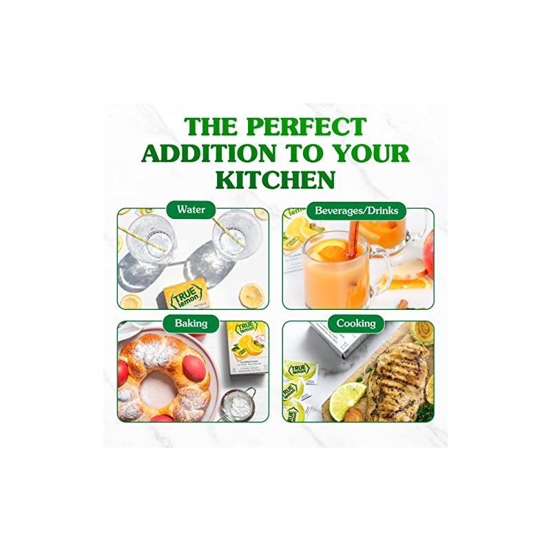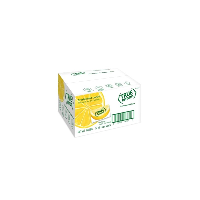 Love lemon in your water but Don? T love fresh lemon? S inconvenience? Well then true Lemon is for you! Made from a patented process that cold-presses and crystallizes the lemon oils and juices, true Lemon delivers consistent fresh-squeezed lemon taste in a convenient packet. Add true Lemon to your water and you? All swear you just squeezed a lemon wedge into your water. But Don? T stop there! True Lemon is great in hot/iced teas, drinks and beverages. You can also use true Lemon for your cooking, baking and seasoning applications. Sprinkle true Lemon on food instead of salt. Because of true Lemon? S great taste and convenience, you? All find you? Re reaching for true Lemon all the time!