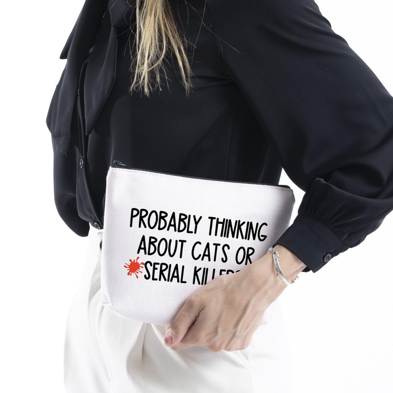 True Crime Addict Probably Thinking About Cats Or Serial Killers Zipper Makeup Bag, Cats Serial Killers Eu, Cosmetic bag with print