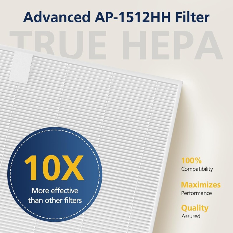 - 【High Performance】: Our AP-1512hh filter replacement combined with high efficiency filtration system, The True HEPA filter are capable of attaching 99.99% of airborne particles as small as 0.01 microns, and the carbon filter helps you solve the problem of unpleasant odors and gases.